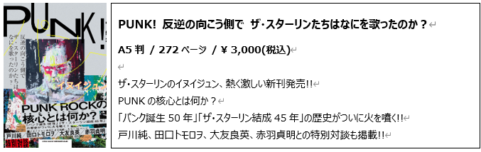 ①3/7(⼟)先⾏発売書籍『PUNK! 反逆の向こう側で ザ・スターリンたちはなにを歌ったのか︖』をご購⼊者様