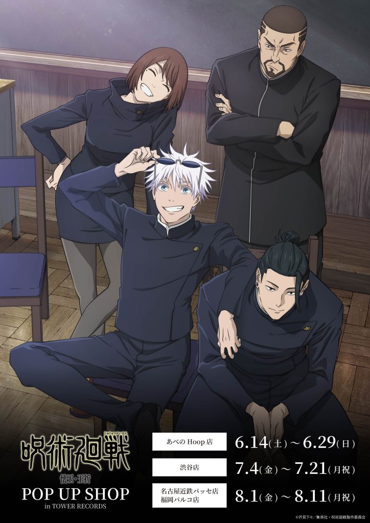 タワーレコード渋谷店、タワーレコード名古屋近鉄パッセ店、タワーレコードあべのHoop店、タワーレコード福岡店にて『呪術廻戦』「懐玉・玉折」POP UP SHOP in TOWER RECORDSの開催が決定しました!