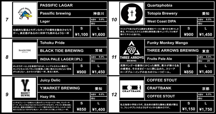 ※掲載中のメニューは開栓状況により予告なくメニューが変更、または品切れとなる場合がございます。予めご了承ください。